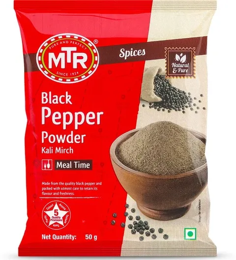 Black pepper powder is a common spice made from dried, ground peppercorns, known for its pungent, spicy flavor that enhances many dishes. It is used globally as a seasoning for savory and sweet foods like soups, salads, meat, and baked goods, and can also be found in spice blends. The spice has nutritional benefits, including manganese, and is associated with properties like antioxidant, digestive, and antibacterial effects.